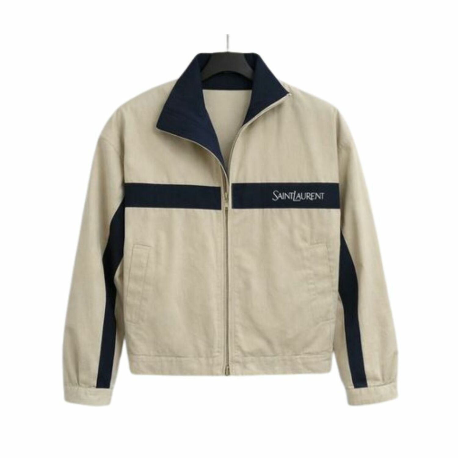 Modern design featuring a front zip closure, side pockets, and subtle Saint Laurent logo on the chest. Premium quality material, lightweight and comfortableperfect for spring/autumn.